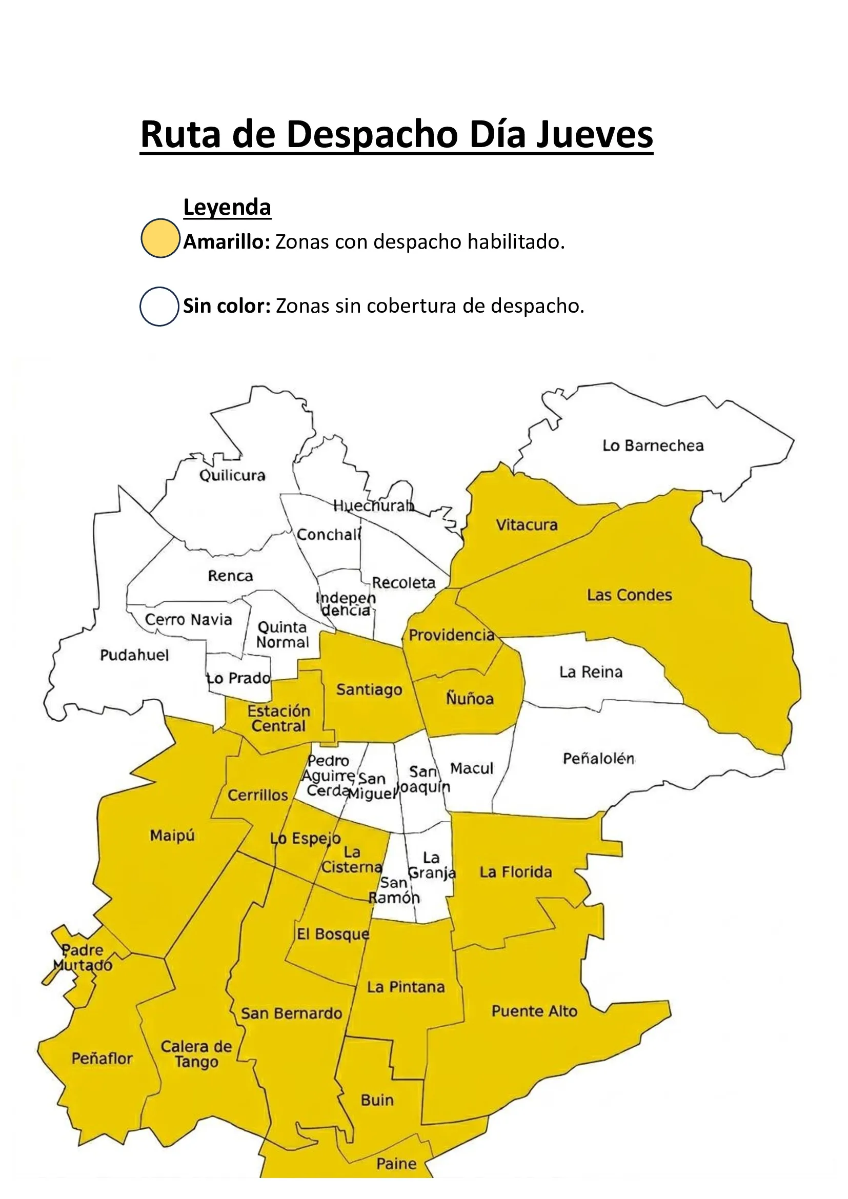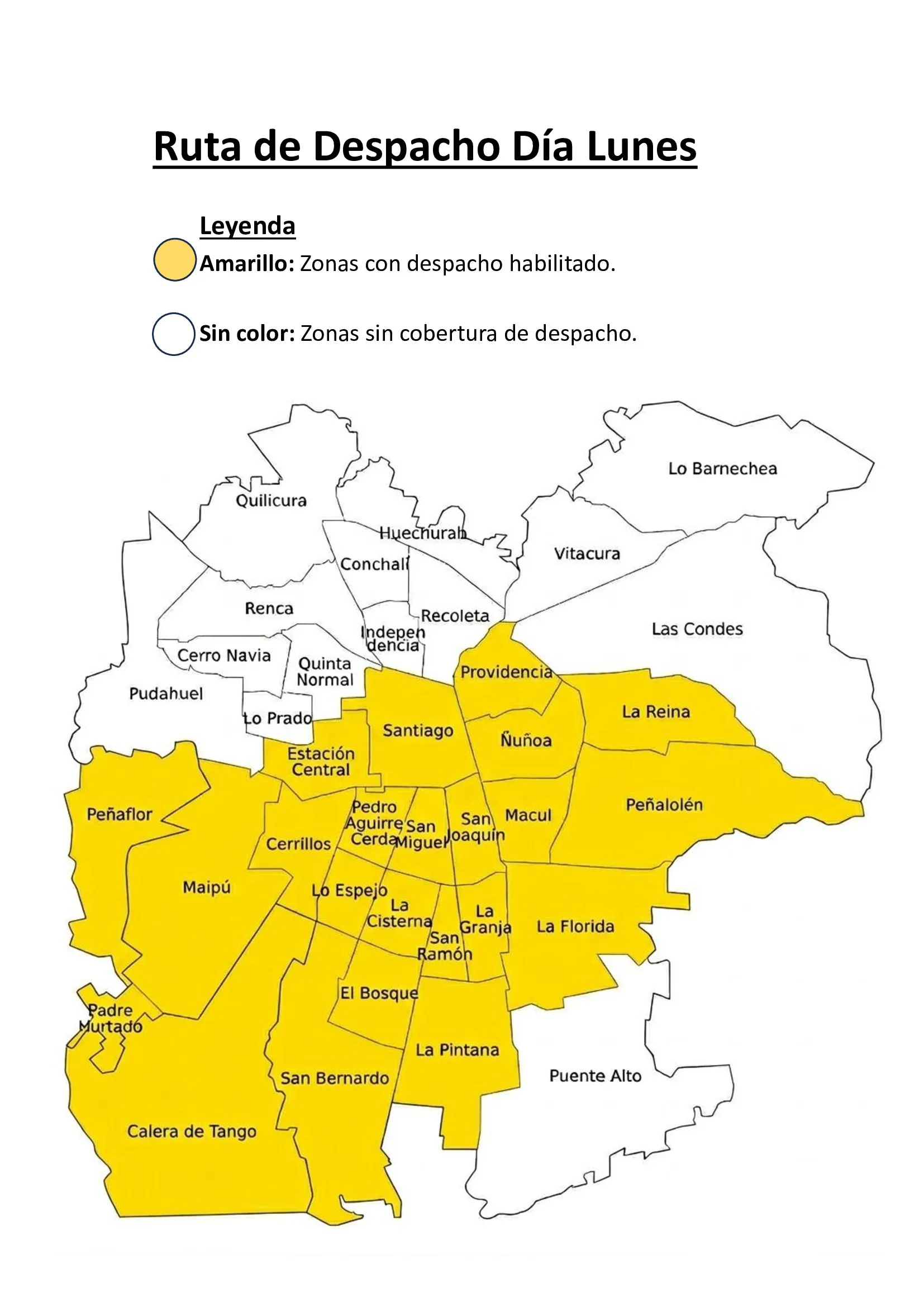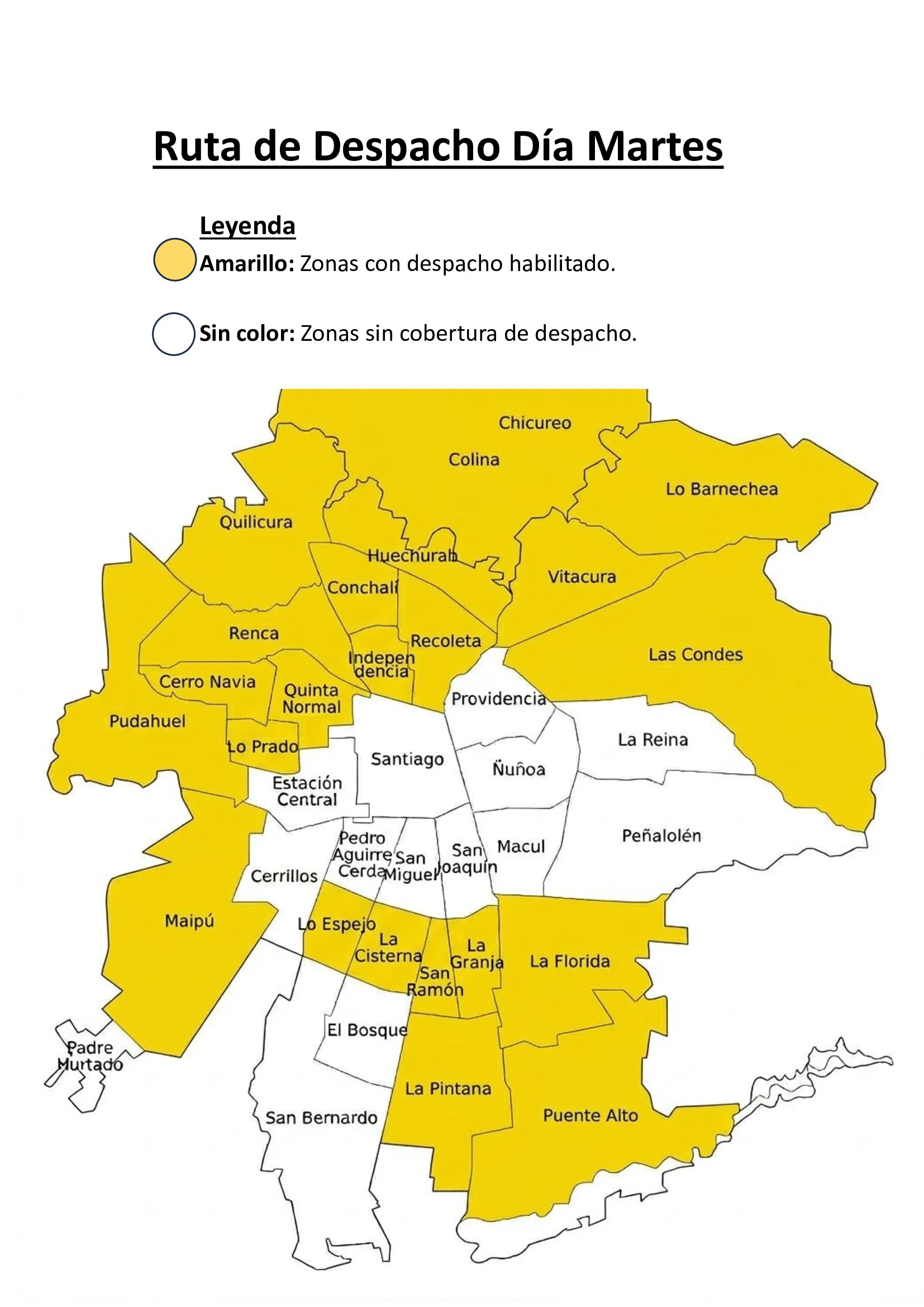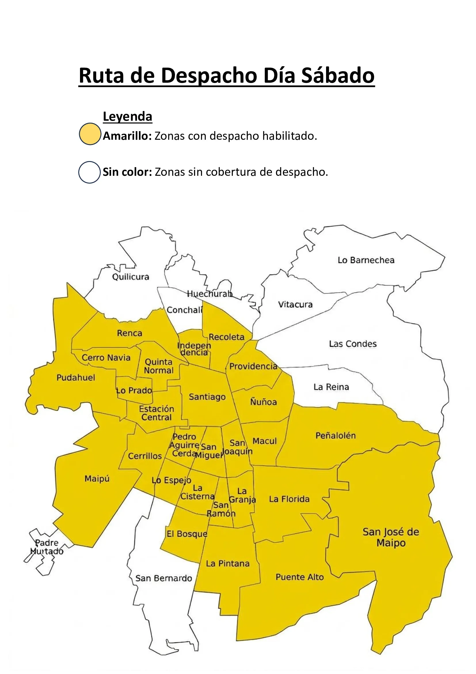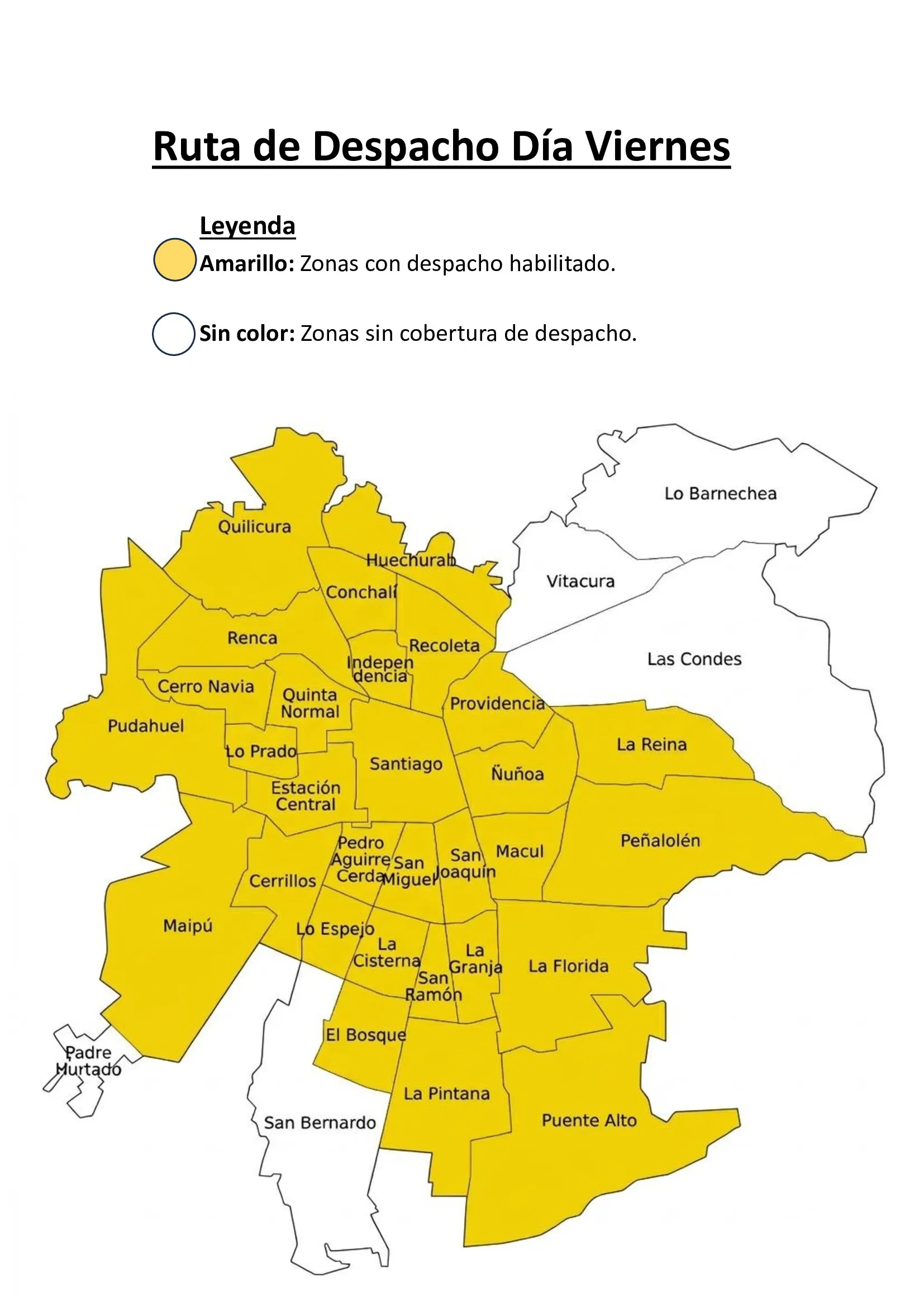 Le recordamos que contamos con despachos hacia las siguientes zonas: